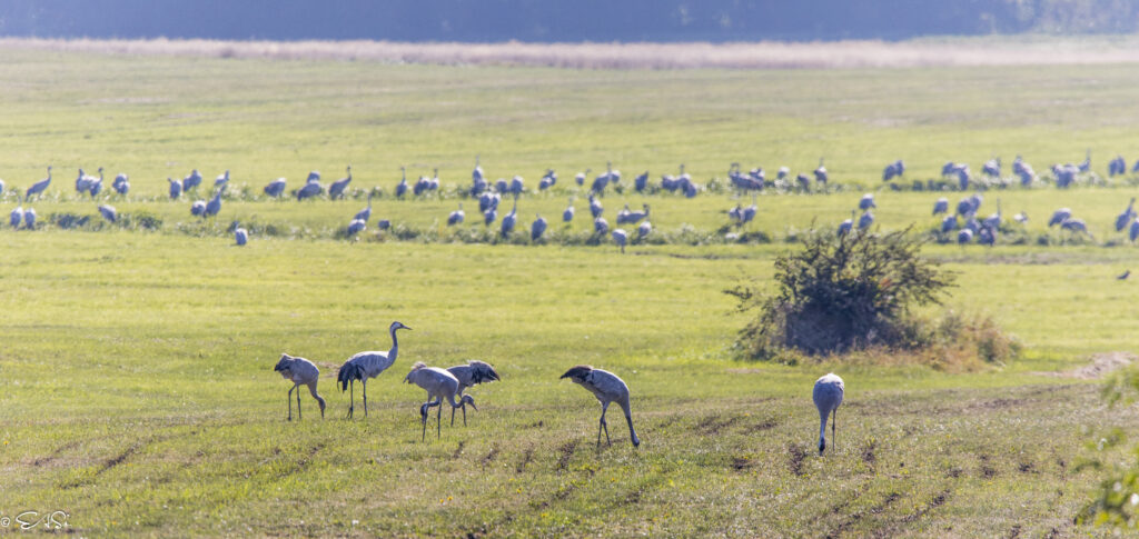 Ende September / Anfang Oktober können in McPomm unzählige Kraniche auf ihrer jährlichen Migration von Skandinavien in den warmen Süden in Frankreich oder Spanien (Extremadura) beobachtet werden. Schon während der Fahrt in den Norden sahen wir neben der Autobahn bei Linum, bei Röbel und auf Rügen Graukraniche. Also weit verstreut in einem großen Gebiet.